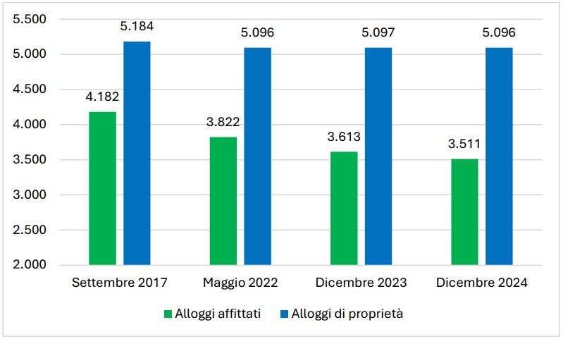 La contrazione è stata di 1.794 alloggi, concentrata nel primo ventennio 1984-2004 ed è dovuta pressocché interamente alle leggi di alienazione patrimoniale (in particolare la L.513/77 e la L.560/1993) che hanno provocato un massiccio passaggio di alloggi dalla gestione pubblica alla proprietà privata.