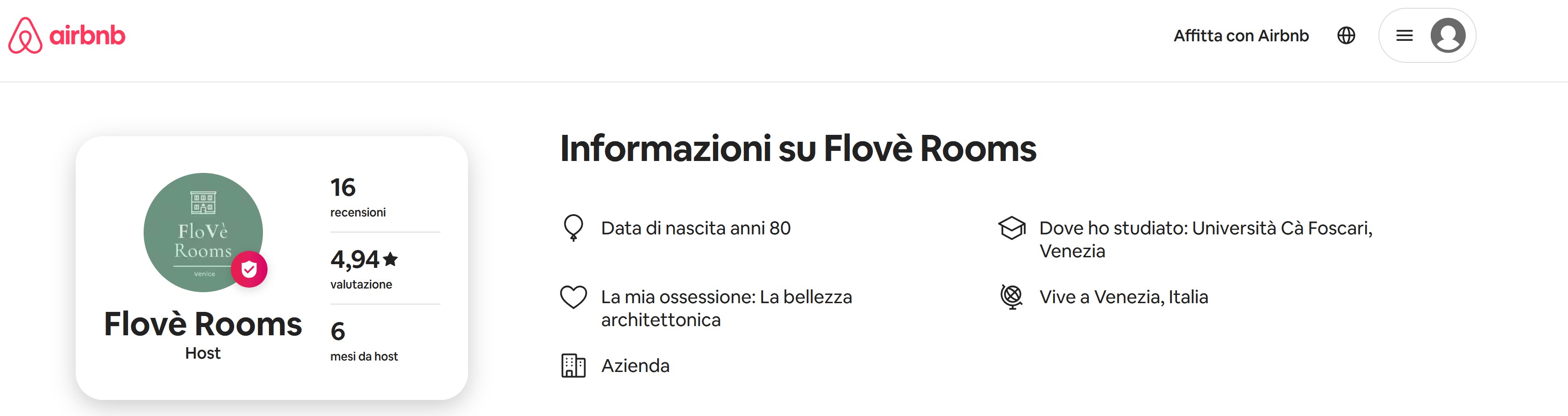 Su Airbnb l’host Flovè rooms si presenta così: