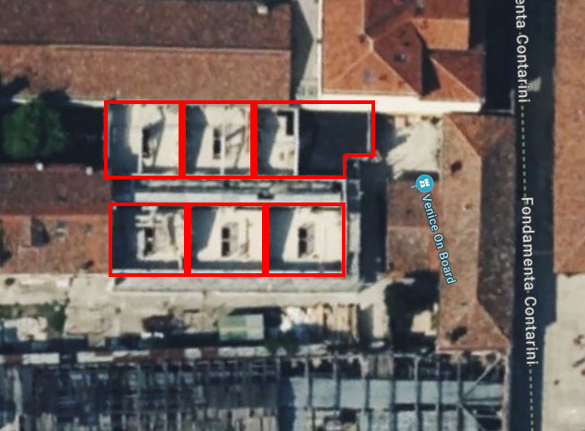 Per una delle stanze della parte a piano singolo è disponibile un video, girato da un’ospite e reperibile tra le recensioni di Google. Il video è facilmente geolocalizzabile perché si nota dalla finestra il portale che esce verso la fondamenta. Dal video è possibile ricostruire la forma della stanza, che è una di quelle con la porta verso l’esterno.