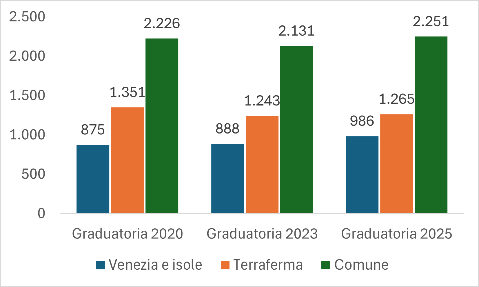 - le domande accolte sono state 2.151, 986 nella Venezia insulare e 1.265 nella Terraferma veneziana.