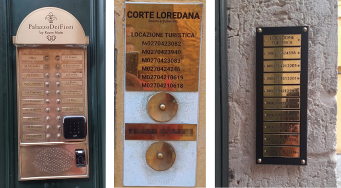 Sebbene si tratti di informazioni reperite attraverso fonti pubbliche, per motivi di privacy abbiamo rimosso dal file dati la colonna utilizzata per documentare i proprietari e gestori di ciascun immobile. Per lo stesso motivo, non pubblichiamo screenshot di recensioni, visure catastali e camerali, o foto di campanelli con nominativi, utilizzate per documentare quanto descritto nell’articoli. Tutto ciò tuttavia è visionabile su richiesta e comprovata motivazione del richiedente (giornalista, ricercatore, etc..).