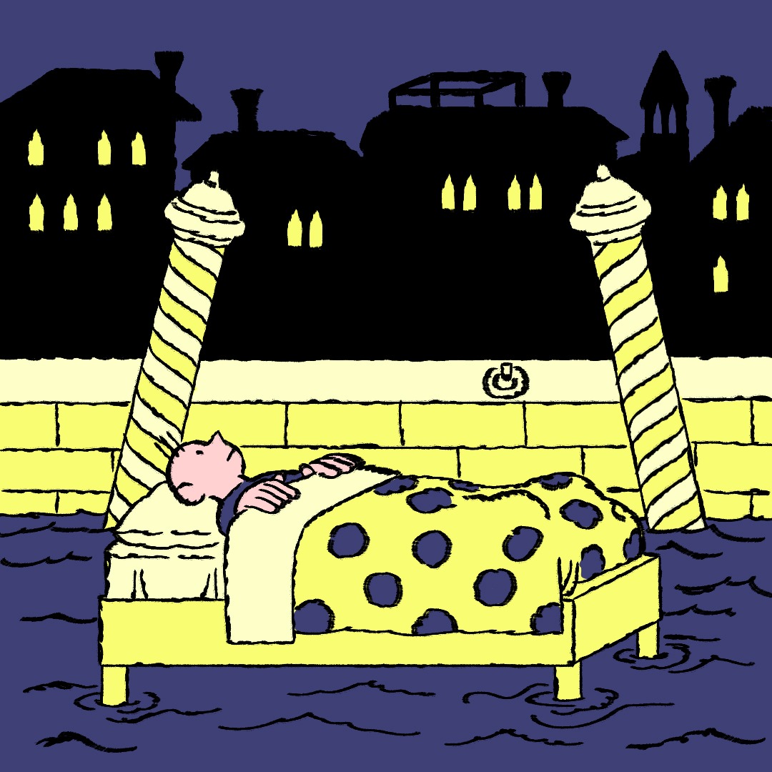 Michele alla notizia ha immaginato veneziani con il letto in acqua perche presto non ci sarà più posto dove dormire se non nei canali