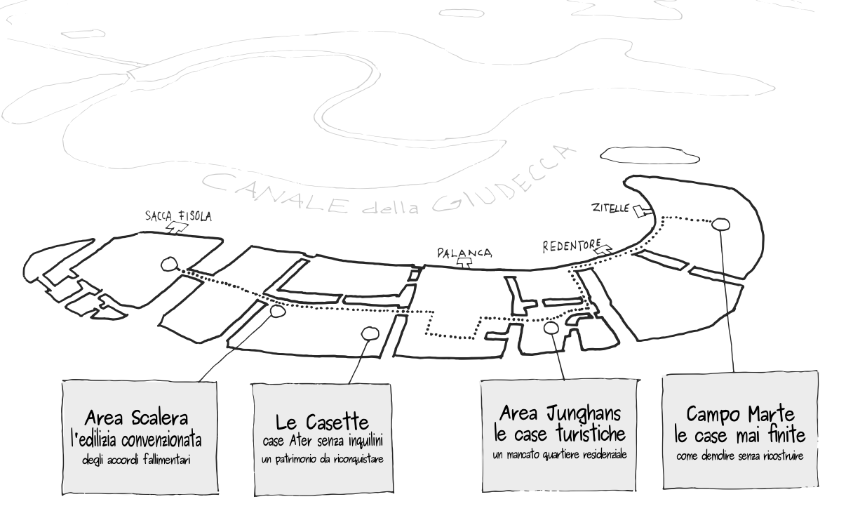 C.U.R.A. è l'acronimo di Camminata Urbana di Riappropriazione dell'Abitare. La prima Camminata la facciamo alla Giudecca come caso studio dell'abitare nella città insulare. TAPPA 1. L'ex Scalera: lo scandalo dell’edilizia convenzionataPeriodo: 2010 – oggi (Giunte: Cacciari-Orsoni-Brugnaro) Numero alloggi previsti: 50 di cui 25 in vendita in edilizia convenzionataNumero alloggi realizzati: … ▶ Continua a leggere -