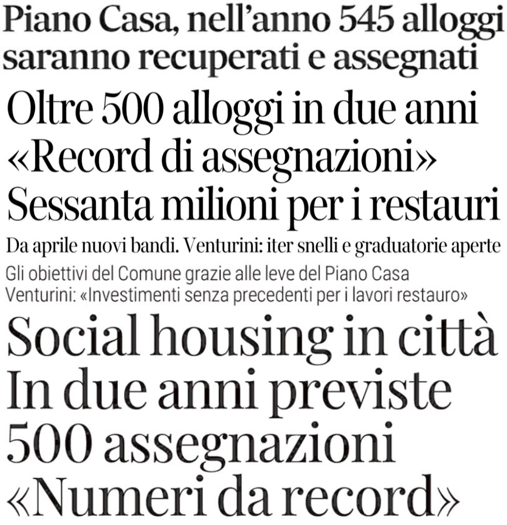La stampa locale di sabato 8 marzo ha pubblicato una sintesi della conferenza stampa tenuta dall’assessore alla Coesione Sociale sul bilancio delle politiche per la residenza degli ultimi anni e sulle prospettive future.Come sempre, i toni sono enfatici e autocelebrativi, tesi a magnificare le azioni messe in atto dall’Amministrazione: secondo l’assessore il “Piano casa” 2024-2026 non ha … ▶ Continua a leggere -