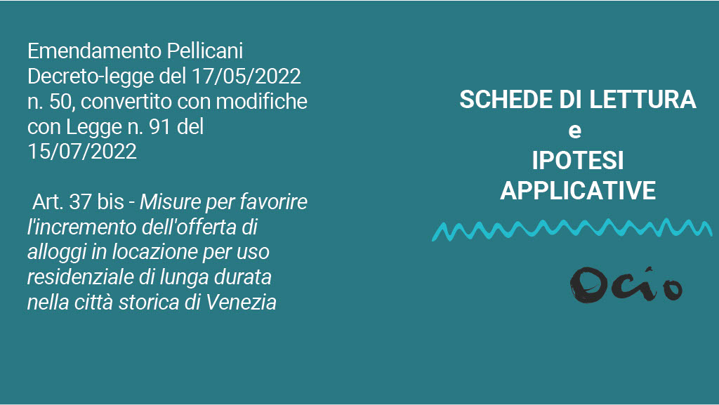 Sono trascorsi più di due anni dall’approvazione dell’emendamento Pellicani (art. 37 bis d.l. n. 50/2022, conv. in l. n. 91/2022), la norma che dà la possibilità al Comune di Venezia – unico in Italia – di introdurre regole e limitazioni alla diffusione delle locazioni brevi.Finora l’attuale Amministrazione non ha voluto né saputo tradurre questi “poteri speciali” – quelli che tanto reclama il … ▶ Continua a leggere -