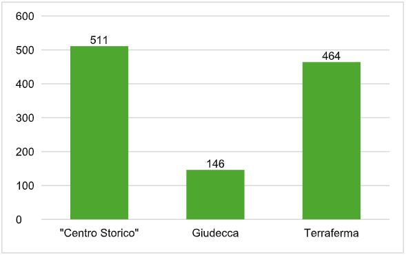 La mancanza dei requisiti richiesti dai bandi ha portato all’esclusione di 97 domande, il 9% delle presentate; nella Terraferma il tasso di esclusione è del 14%; in Giudecca scende al 10,3% e nella Città Storica tocca la quota minima del 3,5%.