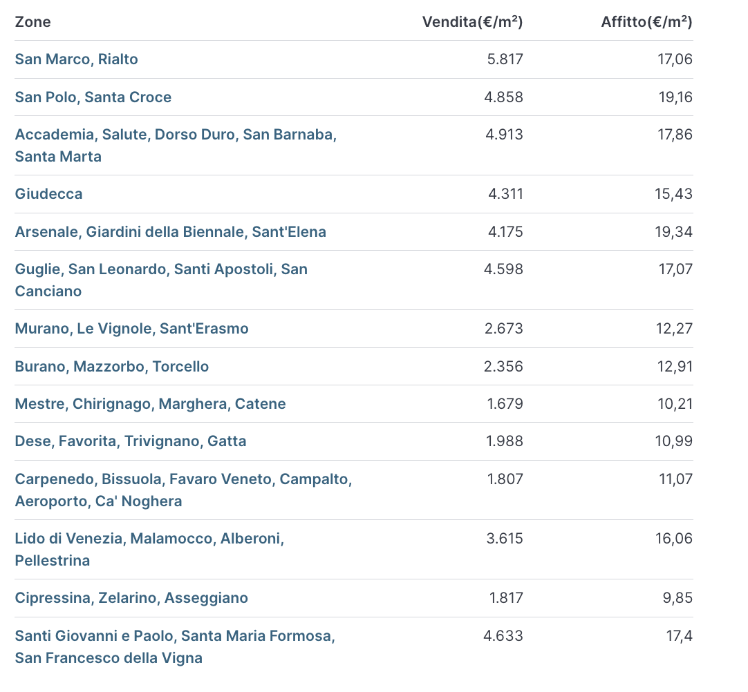 ● assegnato l’annuncio, sulla base dell’indirizzo, a una delle zone previste da Immobiliare.it e riportato il prezzo al m2 per un affitto in quella zona (v. tabella successiva)