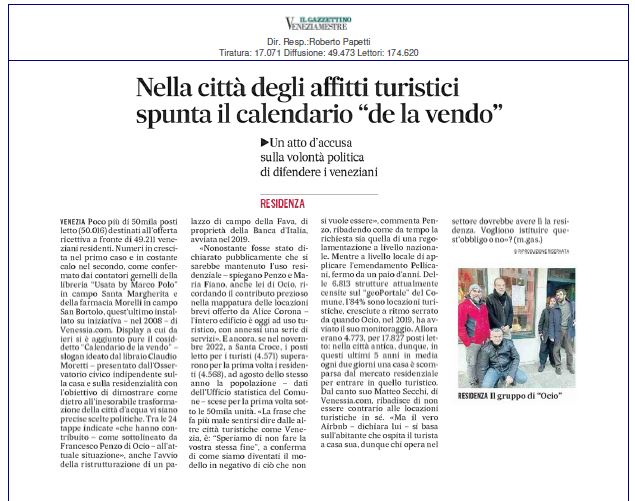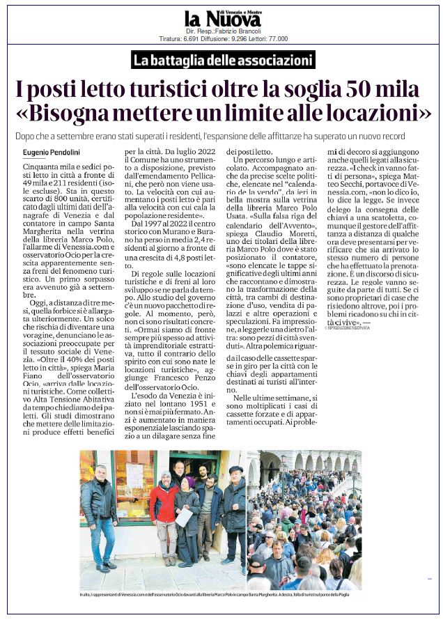 Mentre la soglia dei 50.000 residenti è già stata superata in negativo, durante queste ultime settimane quella dei 50.000 posti letto turistici è stata ampiamente raggiunta. Circa la metà di questi posti letto (il 44%) è in spazi che non hanno una destinazione d’uso turistico-ricettiva: sono case.