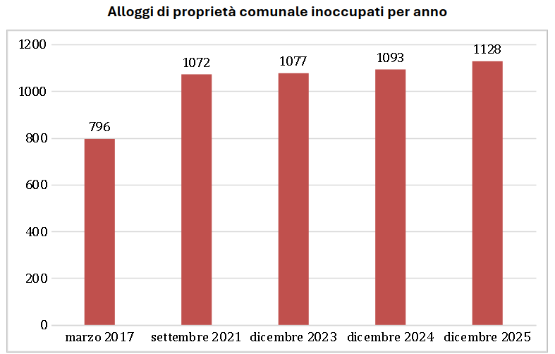 Le abitazioni sfitte Tra marzo 2017 e maggio 2023 le abitazioni sfitte di proprietà comunale sono cresciute da 796 a 1.024.[1] tab. 1 - Abitazioni di proprietà comunale sfitte, per zona Anche considerando solo gli ultimi due anni, la dimensione del patrimonio inutilizzato rimane pressocché invariata: a settembre 2021 era di 1.072 alloggi; venti mesi dopo, maggio 2023, si era ridotta di 48 … ▶ Continua a leggere -