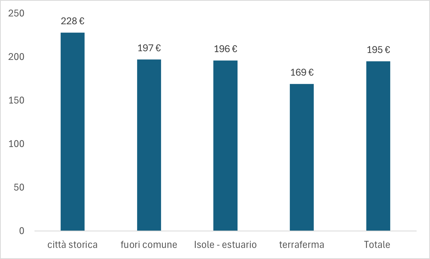 Questa distribuzione è molto differenziata per zona territoriale: nella Terraferma l’utenza si concentra maggiormente nelle fasce di canone inferiori: il 36% paga fino a 100 euro, oltre la metà fino a 150 euro.